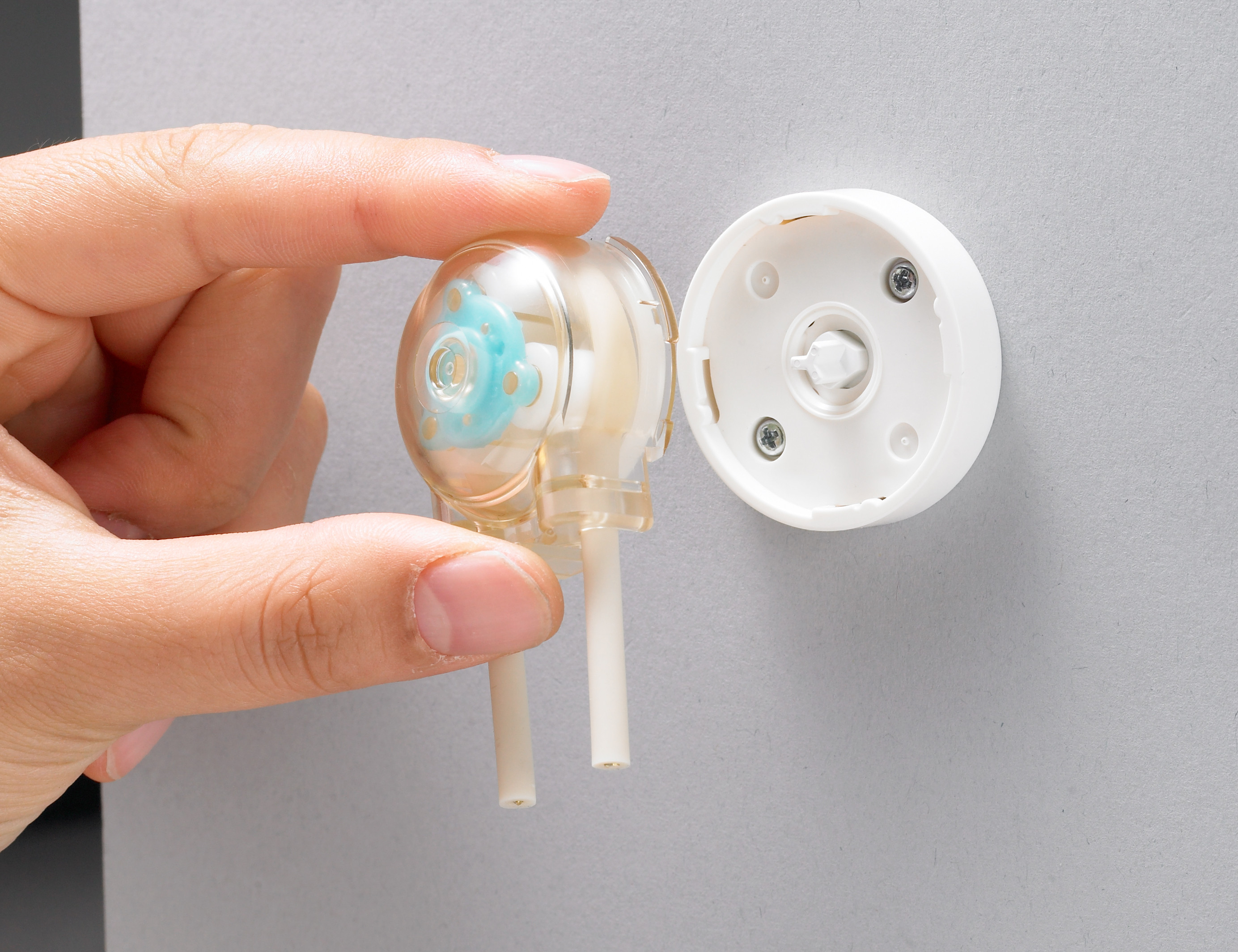 Das Gehäuse kann ohne Verwendung von Werkzeugen einfach montiert und entfernt werden. So kann auch eine Wartung, wie beispielsweise ein Schlauchaustausch schnell durchgeführt werden.