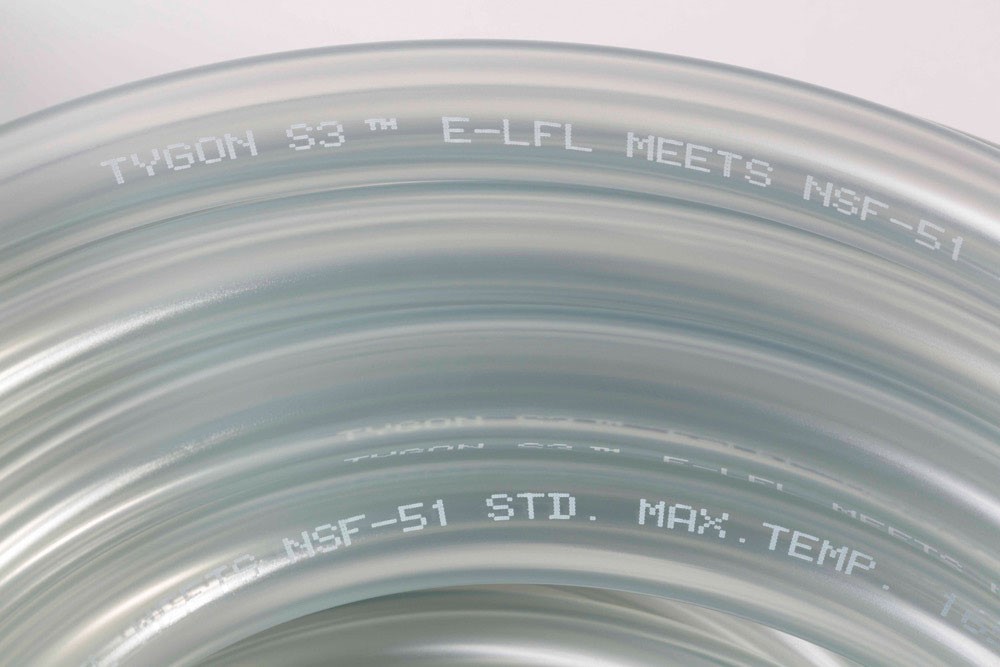 Der Tygon S3 E-LFL Schlauch ist ein transparenter, biegsamer Schlauch für die Förderung von Nahrungsmitteln und Getränken. Der kristallklare Schlauch wurde speziell für die Anwendung in Schlauchpumpen formuliert und sorgt auch bei Gegendruck von bis zu 1,7 bar für eine lange Pumpenlebensdauer und ist phthalatfrei.
